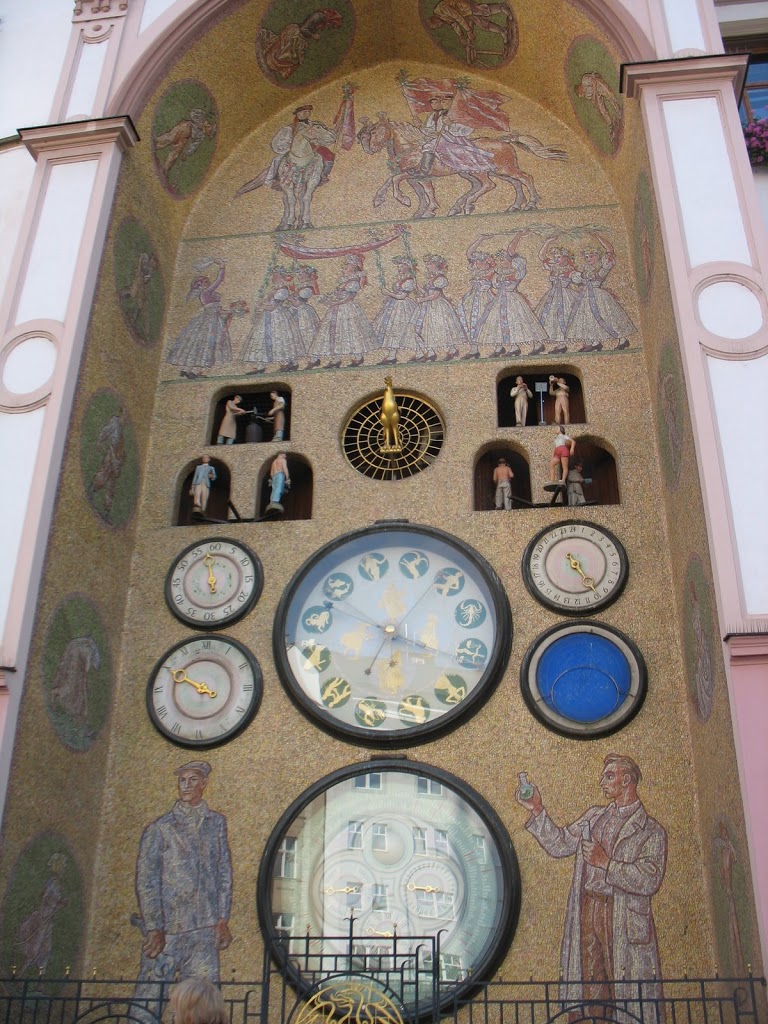 after the end of communist rule, the new democratic regime elected to remove and/or destroy much of the statuary and public art associated with or a product of the socialist state. the remarkable nature and detail of the Olomouc clock, however, saved it from destruction and, as I said, it’s absolutely fascinating to behold. when compared to the clock in Prague, the mosaic background of the Olomouc clock sets it apart — and above, for me. the Olomouc clock has the lengthy chronology and the same weight of history, but with the additional, intriguing dimension provided by the social-realist redesign.