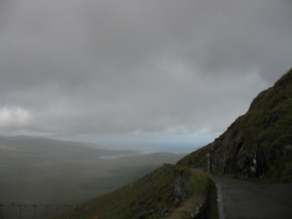 returning from my adventure to Tralee, I opted to take the more scenic drive through the Conor Pass on my return to Dingle town. the road is quite remarkable, scratched out of the rockface with more determination than any of the other roads I traveled. uneven, repatched periodically where it appeared to have washed away at some point, tarmac wedged in defiance of strong odds, boulders protruding into the roadway at inconvenient points. the road goes over Mt. Brandon, the eighth highest peak in Ireland. the clouds hung low over the land north of the pass, but the view towards Dingle was wonderful. I’ll post a picture of the latter later.