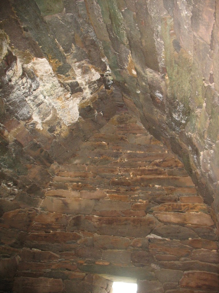 located on the Dingle Peninsula, the Gallarus Oratory was built somewhere between 1,200 and 1,300 years ago. the builders employed a drystone construction method, which means that all these stones were stacked without mortar. they built the place right in the first place as the structure is still watertight. the shape, as one can see, is quite similar to the boat (currach) found often in the Dingle peninsula. there are traces of mortar on the inside, suggesting the interior might have been plastered at one time. there’s a small rounded window in the east side, directly across from the door, which faces west. standing in the doorway, you can see all the way to the end of the peninsula and the Atlantic ocean.