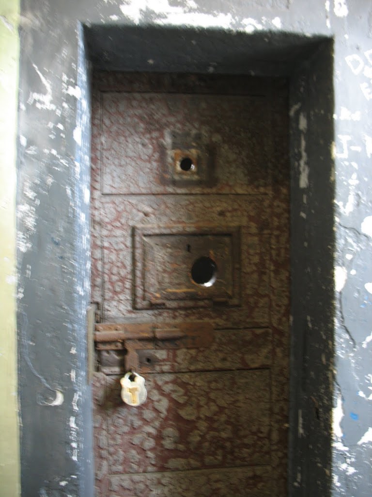 while the west wing represented one school of penal thought, the newer east wing represented another. many of the features of the newer wing are aimed at reform, rather than strict punishment. the “pan-optic” style (seen in the second photo) meant that you could see almost everything from any one point along the wall. relatively few guards could keep an eye on the large population (who were not allowed actually into the open area for any kind of recreation). the skylights were intended to draw the gaze of prisoners upwards — to remind them of the appropriate source of inspiration to repent for their crimes. the windows in the cells were located high up on the walls, and the inside of the peep hole was shaped to look like an eye: you were always being watched and you couldn’t forget where they expected you to turn for “help.”