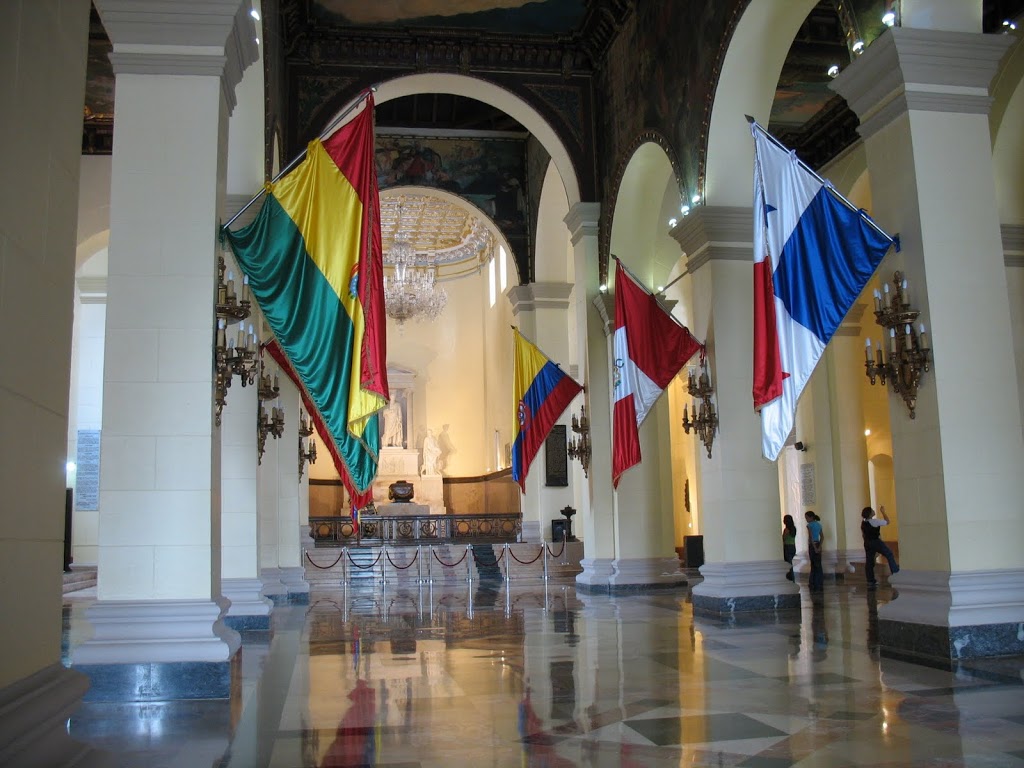 (again, another quandary: Bolivar died in and was initially interred in Santa Marta, Colombia. twelve years after his death, the then-president of now-Venezuela requested that his remains be returned to Caracas, where Bolivar was born. not so very long ago, the authenticity of the bones resting in state in the Panteon was called into question and, as Bolivar had no direct descendants, verification is even more complicated.)
